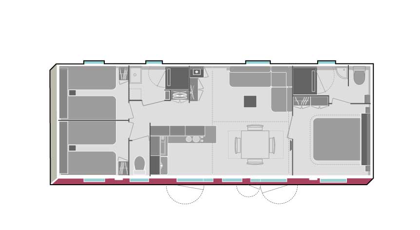 1 chambre parents avec un lit de 140×190 cm, 2 chambres enfants avec 2 lits de 80×190 cm, oreillers et couettes dans les chambres, linge fourni (serviettes de toilette non fournies), cuisine, plaque gaz, cafetière, réfrigérateur-congélateur, micro-ondes, salon, douche, lavabo, wc (séparé de la partie douche pour une des salles de bain), chauffage salon, plancha au gaz, terrasse surélevée semi-couverte, salon de jardin.
